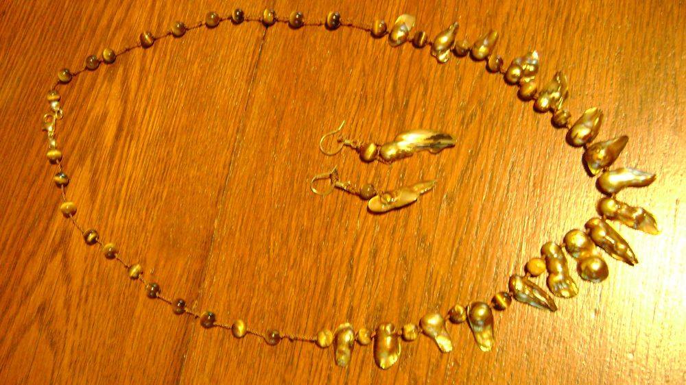 geknoopt; parelmoerschelp met tijgeroogkralen